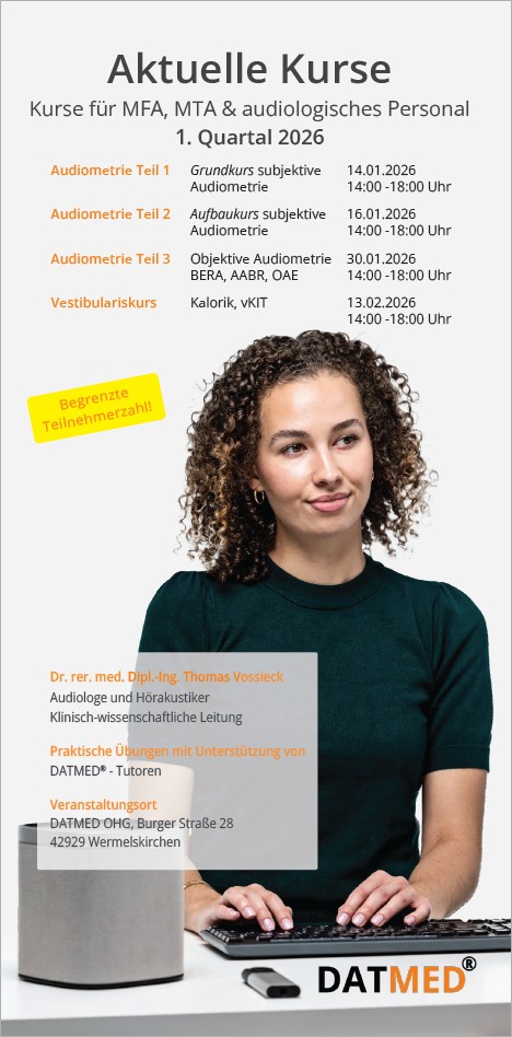 Aktuelle Kurse & Seminare 1. Quartal 2026 für HNO-Praxispersonal, Tagungsort: Wermelskirchen