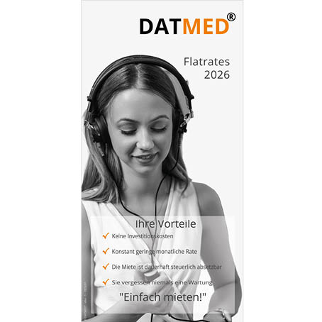 10.01.2026 DATMED®-Flatrates 2026 Mit dem Mietmodul der DATMED®-Flat entscheiden Sie sich für eine sorgenfreie Lösung. Niedrige monatliche Raten und ein umfangreiches Serviceangebot sorgen dafür, dass Sie sich ganz auf Ihr Kerngeschäft konzentrieren können. Hier finden Sie die aktuellen Preise: Den aktuellen Flyer mit Preisen können Sie hier herunterladen: | Der Kurs ist ausgebucht! 14.02.2026 Hands-On-Kurse "Vestibularis", Samstag 21. Februar 2026 Fortbildung für HNO-Ärzte und interessierte MTA & MFA Veranstaltungsort: Berlin Referenten:
