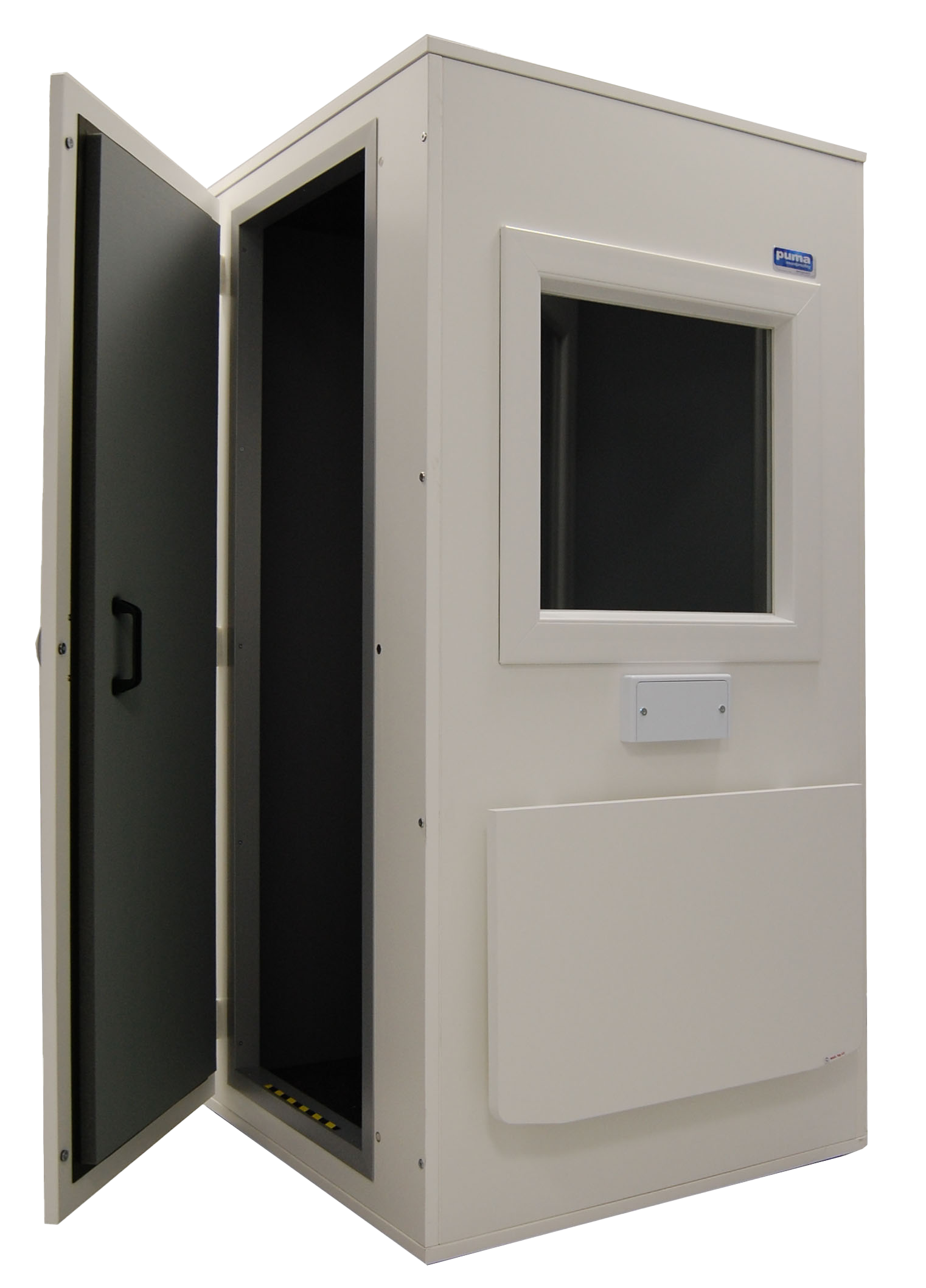 PRO28F – Kompakte und tragbare Premium-Lösung Die PRO 28F vor allem für Praxen und Geschäfte mit wenig Platz geeignet. Die PRO 28F besteht aus einem weißen, beständigen, feuerfesten und abwaschbaren Material welche innen mit einem pyramidenförmigen grauen Schallisolierenden Kunststoff ausgekleidet ist. Die Kabine besitzt ein Fenster das aus doppelten Sicherheitsglas gefertigt ist, der Boden ist mit einer speziellen Anti-Vibrations Matte ausgekleidet welche feuerfest, antistatisch und gut zu reinigen ist. Auf einem Blick: