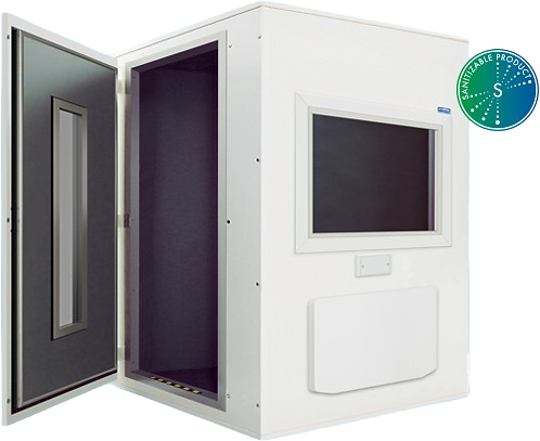 PRO28F Maxi 124cm x 129cm– Kompakte und tragbare Premium-Lösung Die PRO 28F besteht aus einem weißen, beständigen, feuerfesten und abwaschbaren Material welche innen mit einem pyramidenförmigen grauen Schallisolierenden Kunststoff ausgekleidet ist. Die Kabine besitzt ein Fenster das aus doppelten Sicherheitsglas gefertigt ist, der Boden ist mit einer speziellen Anti-Vibrations Matte ausgekleidet welche feuerfest, antistatisch und gut zu reinigen ist. Anwendungsbereiche Die PRO 28F MAXI ist eine Kabine mit hervorragender Schalldämmung. Die kompaktere Version eignet sich für Screening- und Diagnosetests in HNO-Praxen, Audiologiezentren, Hörgeräteakustikern oder arbeitsmedizinischen Praxen. Die MAXI Ausführung der PRO 28F empfiehlt sich, wenn mehr Komfort benötigt wird oder Freifeldmessungen durchgeführt werden sollen. Die Version MAXI kann optional mit Rollen (zwei davon mit Bremsen) für einen einfachen Transport ausgestattet werden. Schalldämmung Die Schalldämmung der PRO28F-Serie wurde im von ACCREDIA akkreditierten Technisch-Physikalischen Labor C.S.I. S.p.A. (Mailand, Italien) geprüft. Das Produkt entspricht den internationalen Normen UNI EN ISO 8253-1:2010 und UNI EN ISO 8253-2:2010. Ausstattung Optional erhältlich: ein geräuscharmes und zwangsbelüftetes System, das einen konstanten Luftaustausch gewährleistet, und/oder eine vertikale Sicht durch die Tür für mehr natürliche Beleuchtung und zur Vermeidung von Klaustrophobie bei besonders empfindlichen Patienten.Auf einem Blick: